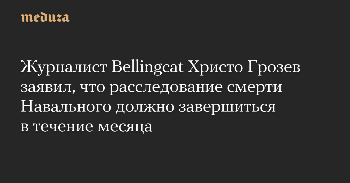 Расследование обстоятельств смерти политика Алексея Навального должно завершиться в течение месяца, сказал журналист-расследователь Bellingcat Христо Грозев в эфире «Дождя».