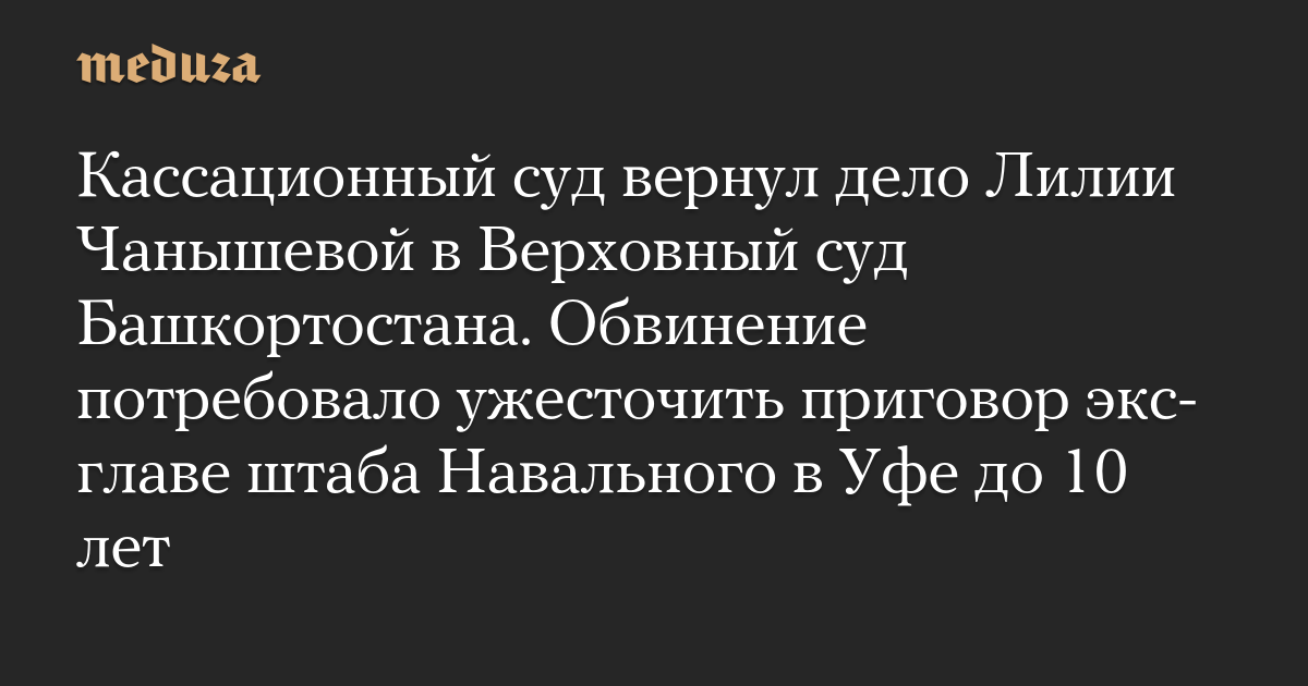 Кассационный суд вернул дело Лилии Чанышевой в Верховный суд Башкортостана. Обвинение потребовало ужесточить приговор экс-главе штаба Навального в Уфе до 10 лет