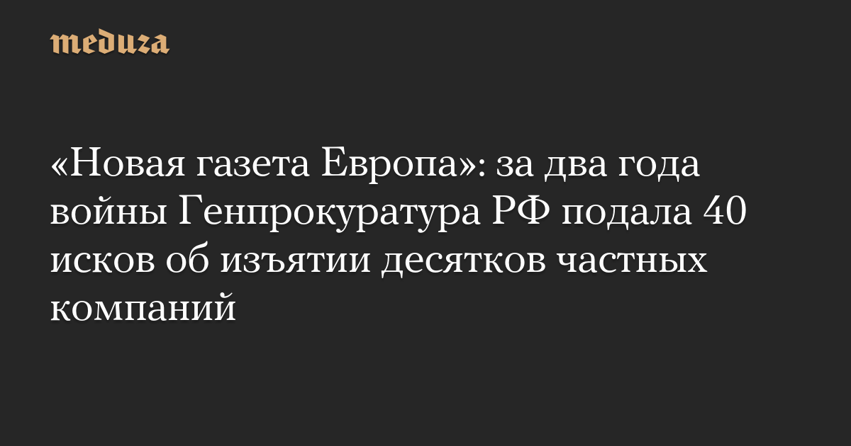 «Новая газета Европа»: за два года войны Генпрокуратура РФ подала 40 исков об изъятии десятков частных компаний