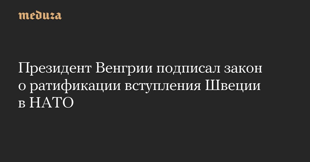 Президент Венгрии Тамаш Шуйок подписал закон о ратификации соглашения о вступлении Швеции в НАТО, сообщает канцелярия президента.