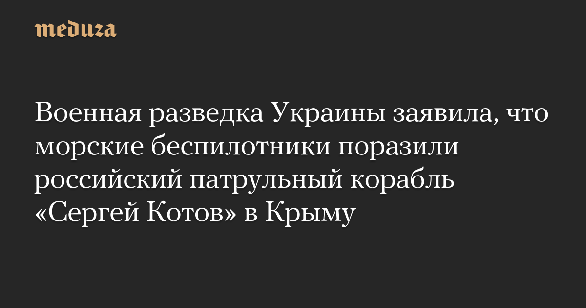 Военная разведка Украины заявила, что морские беспилотники поразили российский патрульный корабль «Сергей Котов» в Крыму