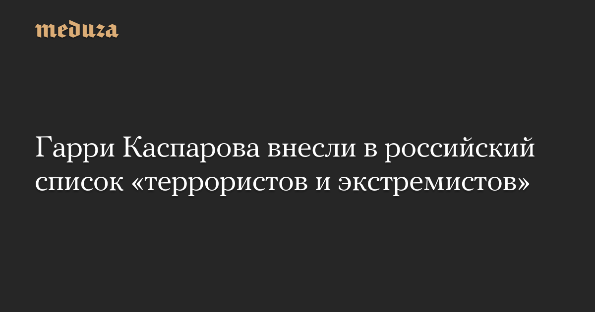 Росфинмониторинг внес российского шахматиста и 13-го чемпиона мира по шахматам Гарри Каспарова в перечень «террористов и экстремистов», следует из обновления списка.