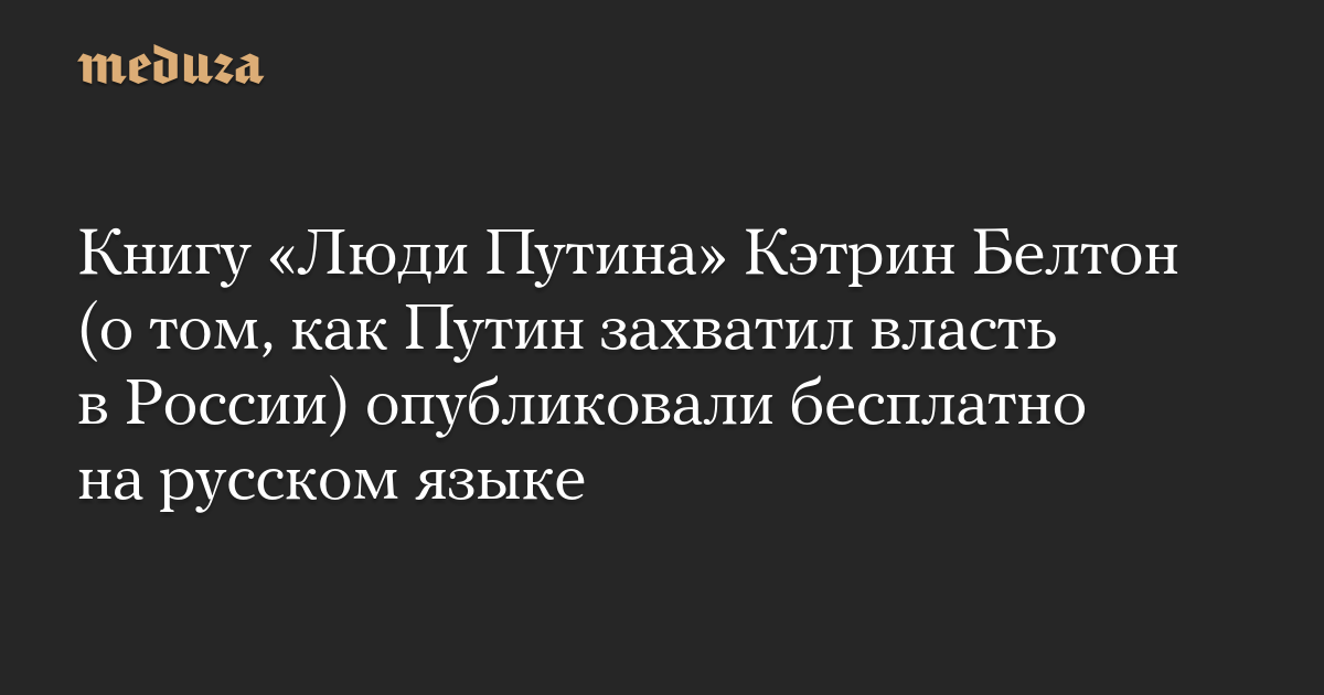 Книгу «Люди Путина» Кэтрин Белтон (о том, как Путин захватил власть в России) опубликовали бесплатно на русском языке