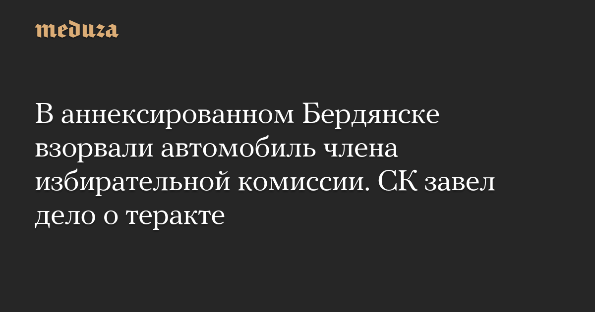В аннексированном Бердянске взорвали автомобиль члена избирательной комиссии. СК завел дело о теракте