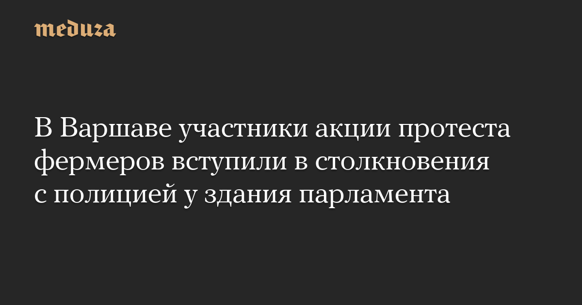 Протестующие польские фермеры вступили в столкновения с полицией в центре Варшавы у здания парламента. Об этом пишет Reuters.