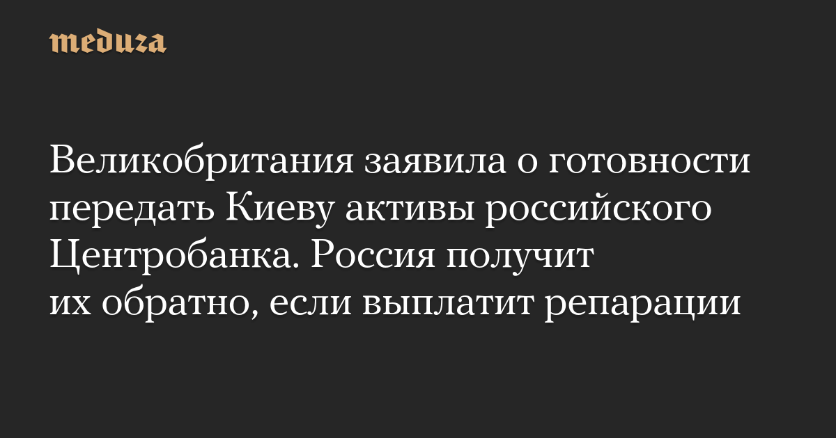 Великобритания заявила о готовности передать Киеву активы российского Центробанка. Россия получит их обратно, если выплатит репарации