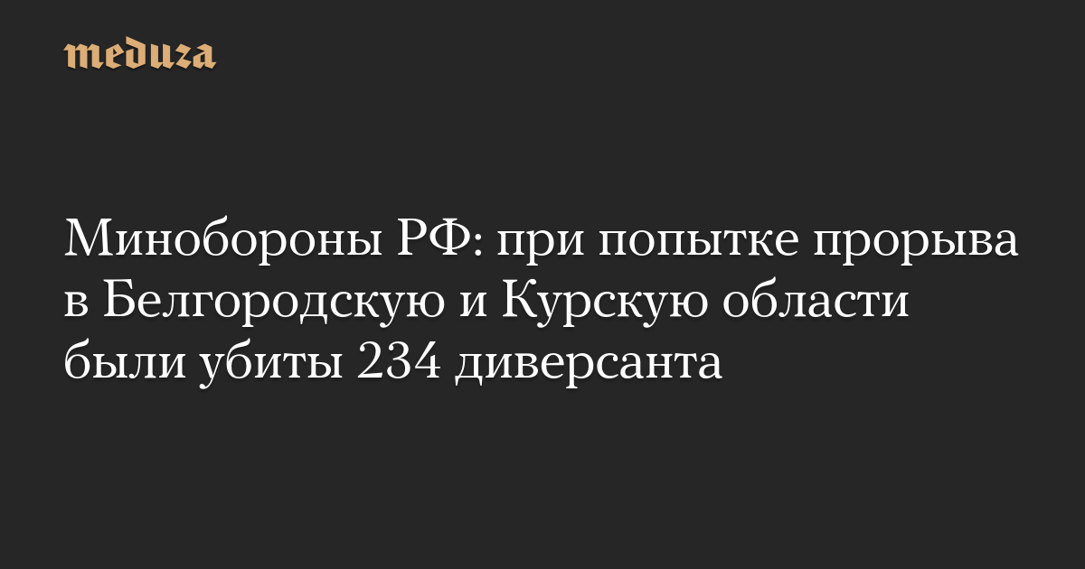 Минобороны РФ: при попытке прорыва в Белгородскую и Курскую области были убиты 234 диверсанта