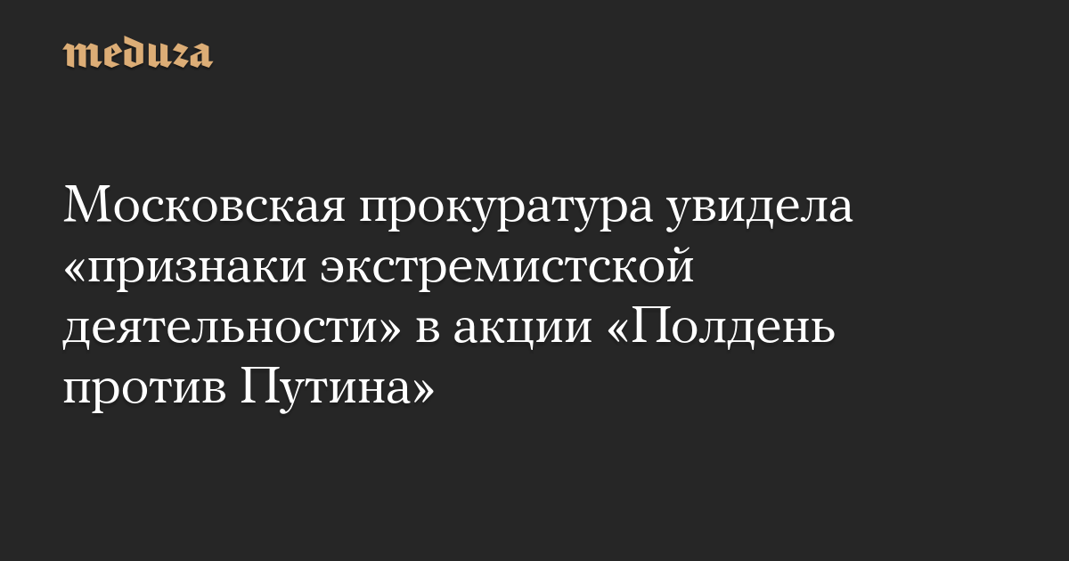 Московская прокуратура увидела «признаки экстремистской деятельности» в акции «Полдень против Путина»
