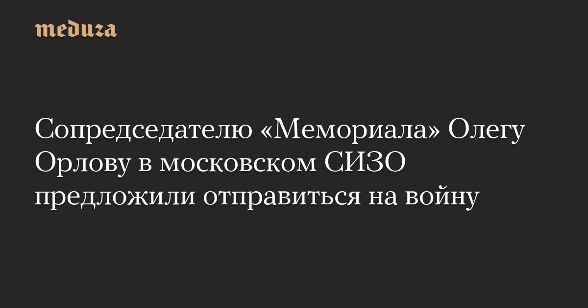 Сопредседателю «Мемориала» Олегу Орлову в московском СИЗО предложили отправиться на войну