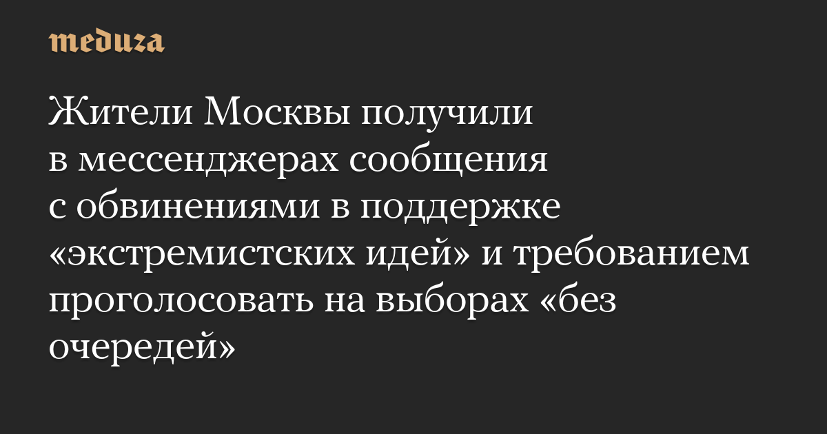 Жители Москвы получили в мессенджерах сообщения с обвинениями в поддержке «экстремистских идей» и требованием проголосовать на выборах «без очередей»
