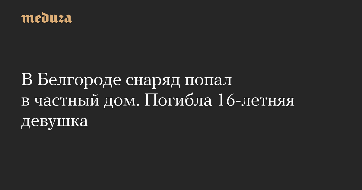 «К большому горю, у нас погиб подросток — девушка 16 лет. От прилета снаряда загорелся частный жилой дом, в котором она находилась. Хотел выразить искренние слова соболезнования семье. Вместе с вами скорбит вся Белгородская область, вся наша страна», — написал он в телеграме.