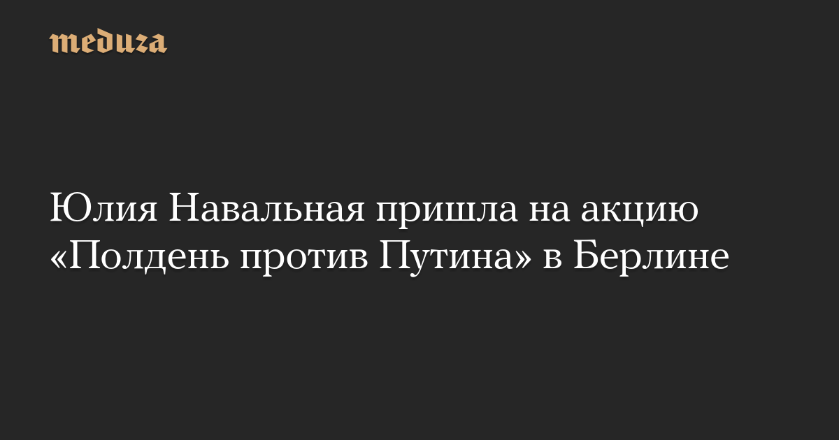 Юлия Навальная, вдова лидера российской оппозиции Алексея Навального, пришла на акцию «Полдень против Путина» в Берлине. Видео с Навальной среди прочих опубликовали «Дождь» и Bild. Вместе с ней была пресс-секретарь ФБК Кира Ярмыш.