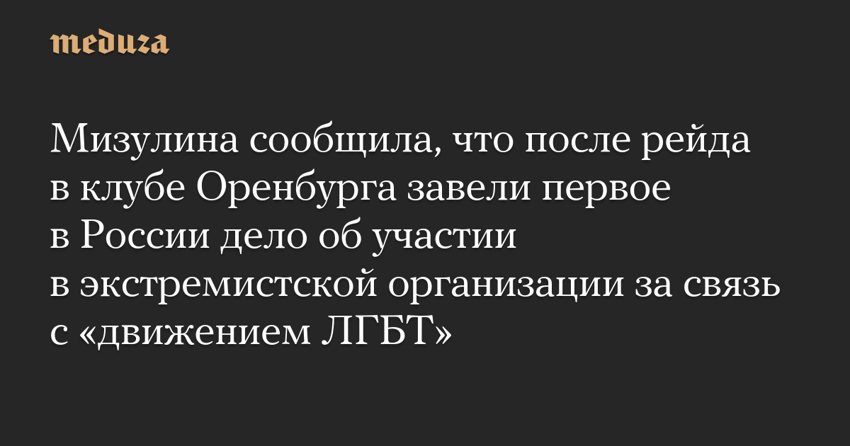Мизулина сообщила, что после рейда в клубе Оренбурга завели первое в России дело об участии в экстремистской организации за связь с «движением ЛГБТ»