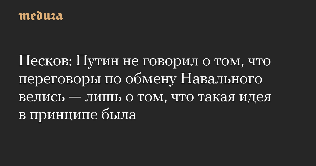 Президент Путин вчера не подтверждал о том, что проведены переговоры. <…> Он рассказал о том, что была выдвинута идея одним из людей об обмене Навального, на которую он потенциально согласился и об этом сразу же сказал тому, кто такую идею выдвинул. Путин не говорил о том, что были проведены на этот счет переговоры.