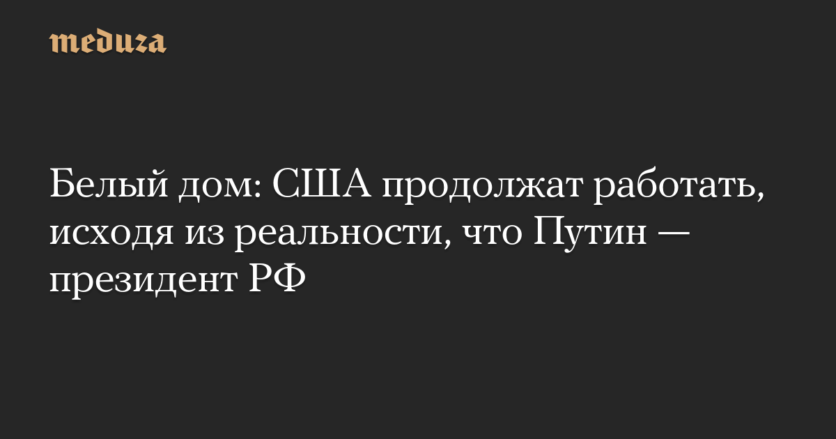 Белый дом: США продолжат работать, исходя из реальности, что Путин — президент РФ