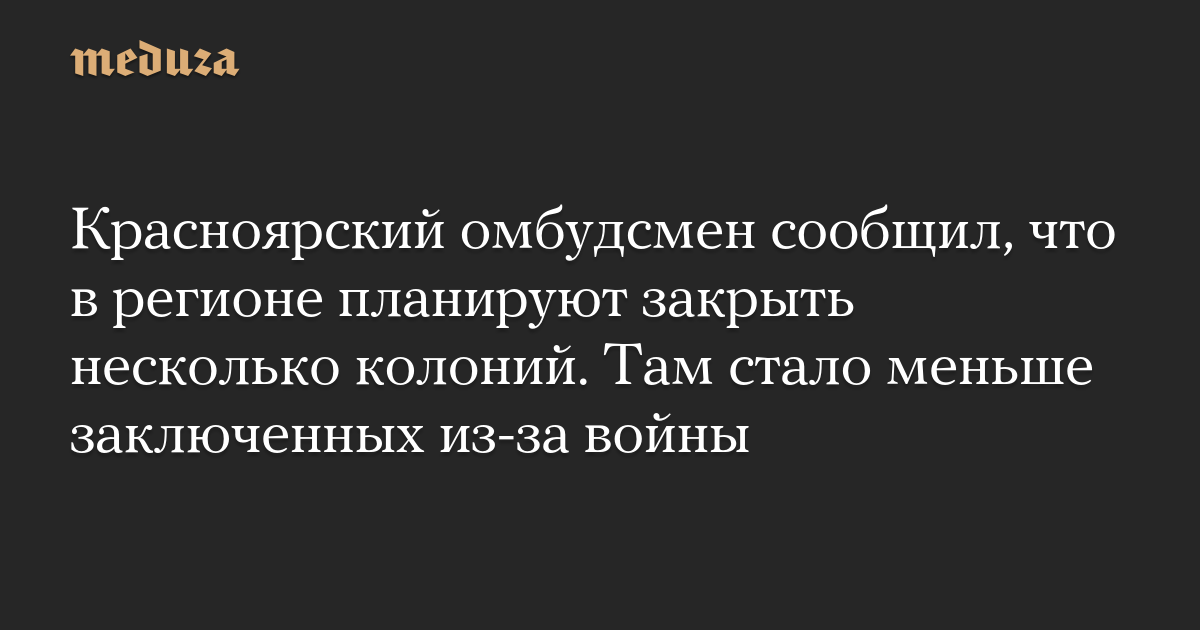 Красноярский омбудсмен сообщил, что в регионе планируют закрыть несколько колоний. Там стало меньше заключенных из-за войны