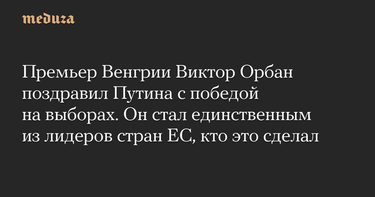 На данный момент Орбан стал единственным лидером страны Евросоюза, который поздравил Путина с победой на выборах.