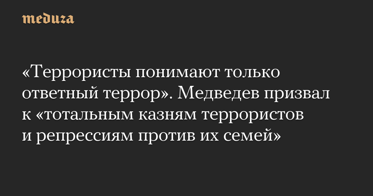«Террористы понимают только ответный террор». Медведев призвал к «тотальным казням террористов и репрессиям против их семей»