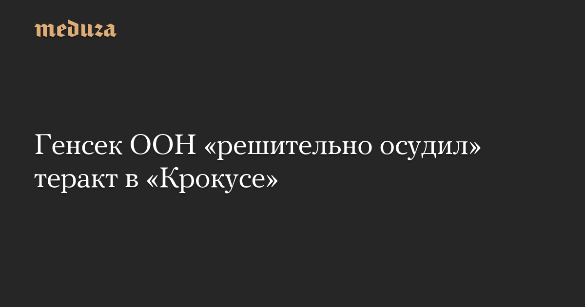 Генсек ООН «решительно осудил» теракт в «Крокусе»