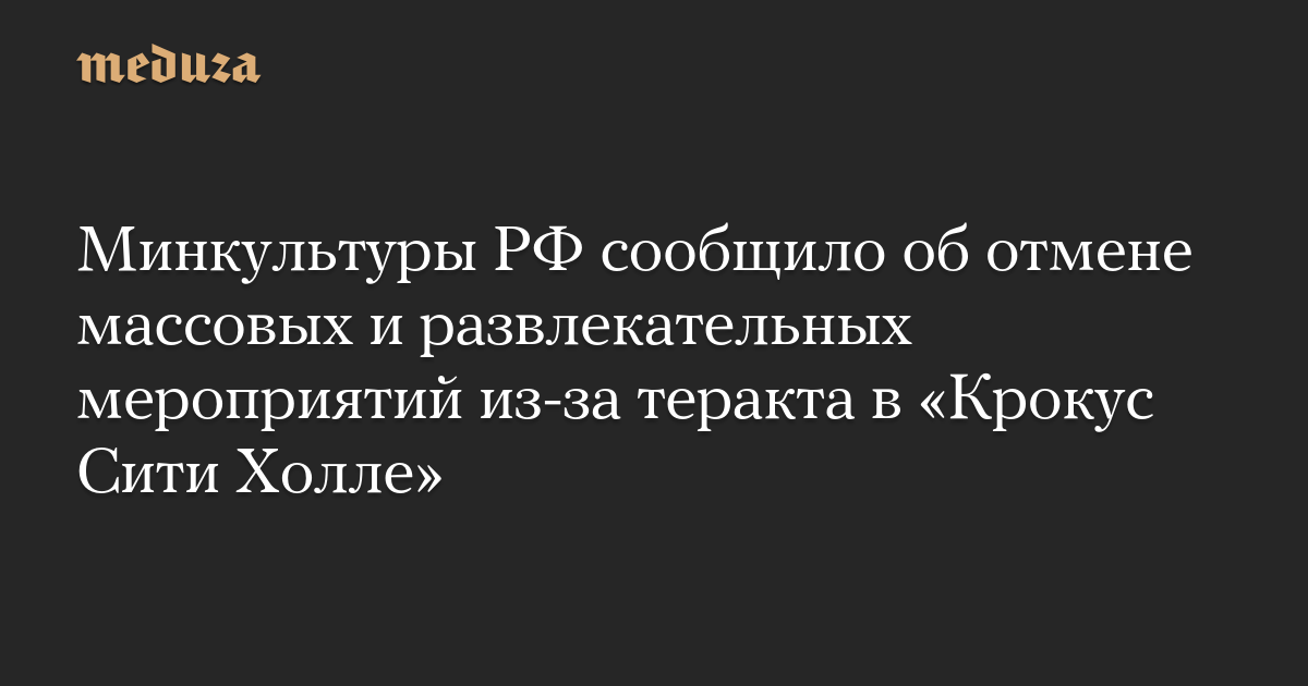 Минкультуры РФ сообщило об отмене массовых и развлекательных мероприятий из-за теракта в «Крокус Сити Холле»