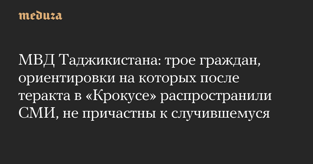 Трое граждан Таджикистана, копии якобы ориентировок на которых распространили российские телеграм-каналы после теракта в Московской области, не причастны к совершению преступлений в России. Об этом заявило МВД Таджикистана, пишет ТАСС.