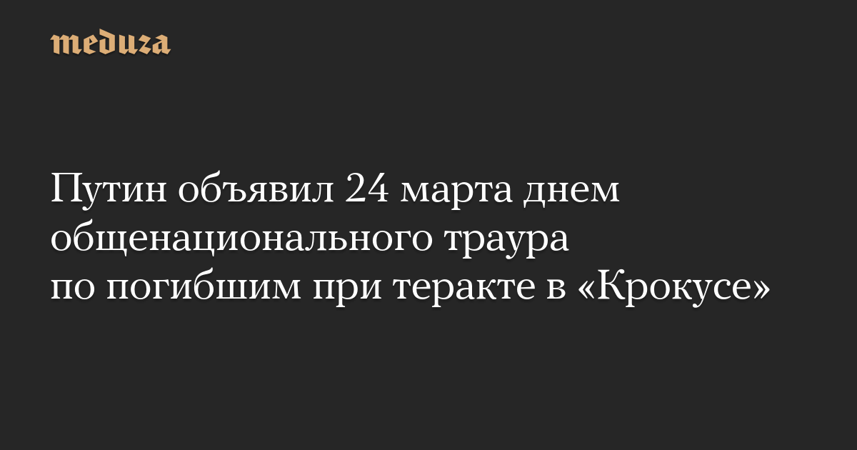 Путин объявил 24 марта днем общенационального траура по погибшим при теракте в «Крокусе»