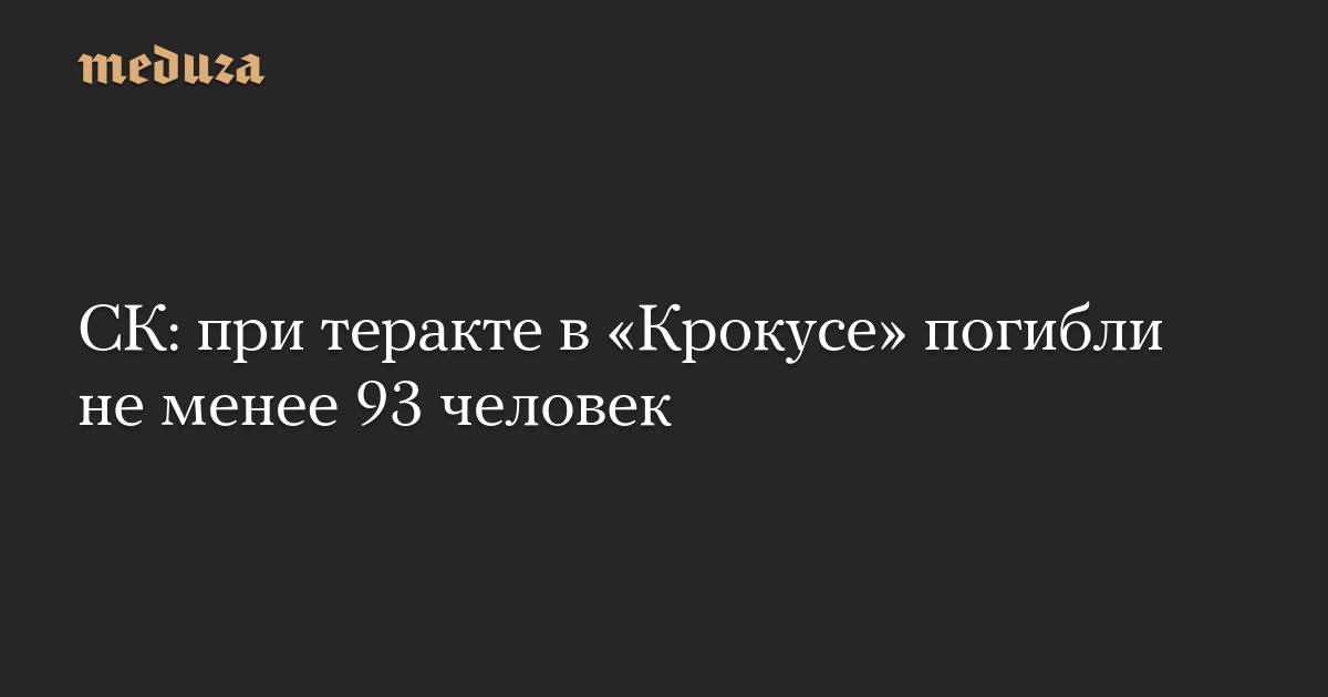 Следственный комитет России сообщил, что, по последним данным, при теракте в концертном зале «Крокус Сити Холл» в Московской области погибли 93 человека.