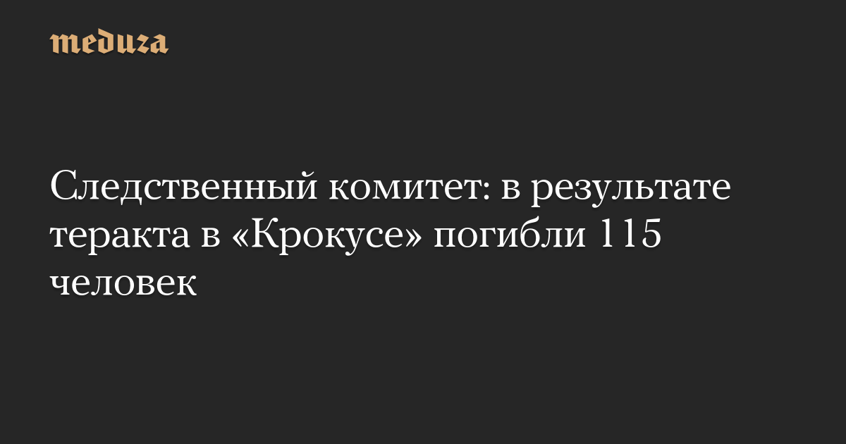 По последним официальным данным, в результате теракта в подмосковном «Крокус Сити Холле» погибли 115 человек, сообщил Следственный комитет РФ.