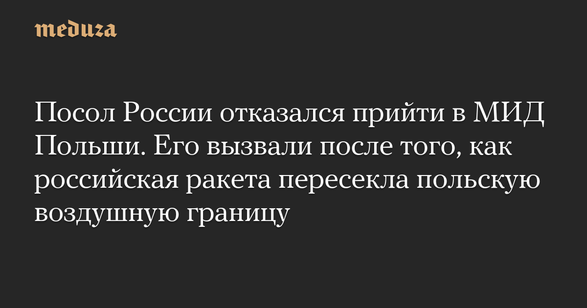 Посол России отказался прийти в МИД Польши. Его вызвали после того, как российская ракета пересекла польскую воздушную границу
