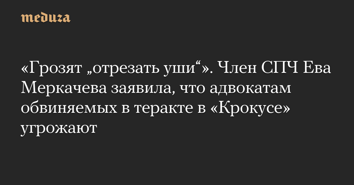 «Грозят „отрезать уши“». Член СПЧ Ева Меркачева заявила, что адвокатам обвиняемых в теракте в «Крокусе» угрожают