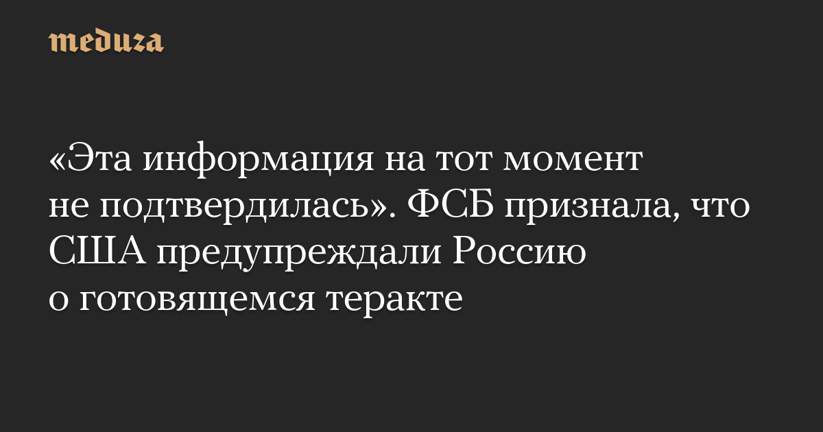 «Эта информация на тот момент не подтвердилась». ФСБ признала, что США предупреждали Россию о готовящемся теракте