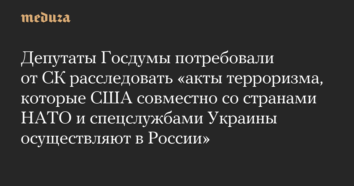 Депутаты Госдумы потребовали от СК расследовать «акты терроризма, которые США совместно со странами НАТО и спецслужбами Украины осуществляют в России»