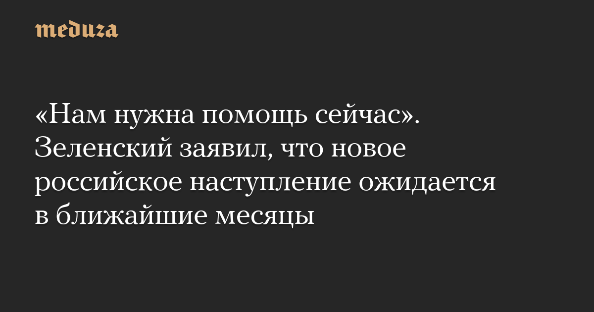 «Нам нужна помощь сейчас». Зеленский заявил, что новое российское наступление ожидается в ближайшие месяцы