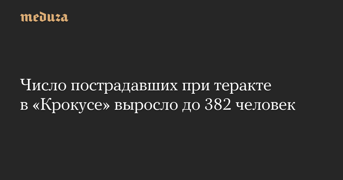 Число пострадавших при теракте в «Крокусе» выросло до 382 человек