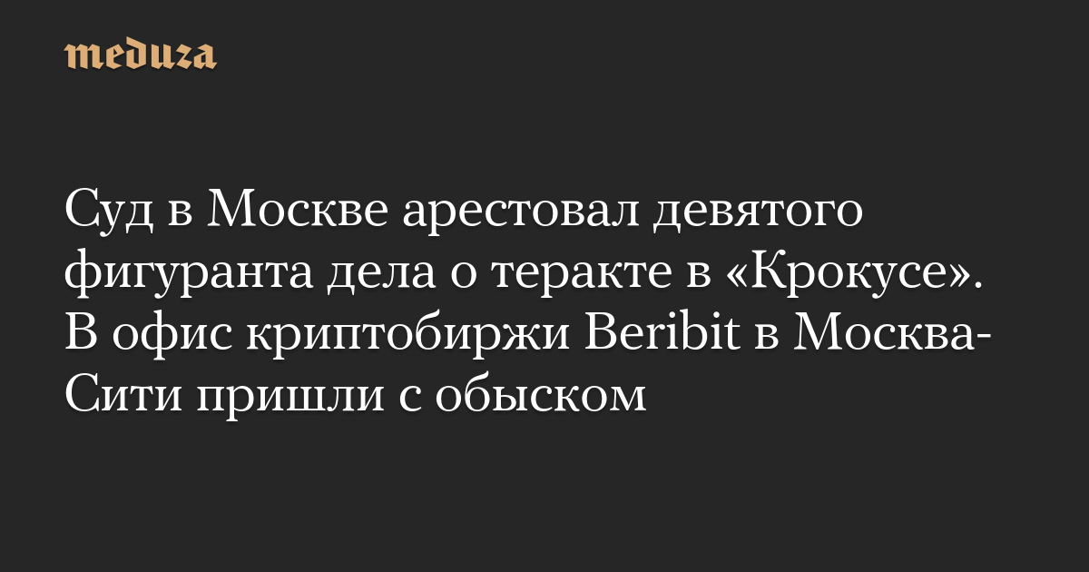 Суд в Москве арестовал девятого фигуранта дела о теракте в «Крокусе». В офис криптобиржи Beribit в Москва-Сити пришли с обыском
