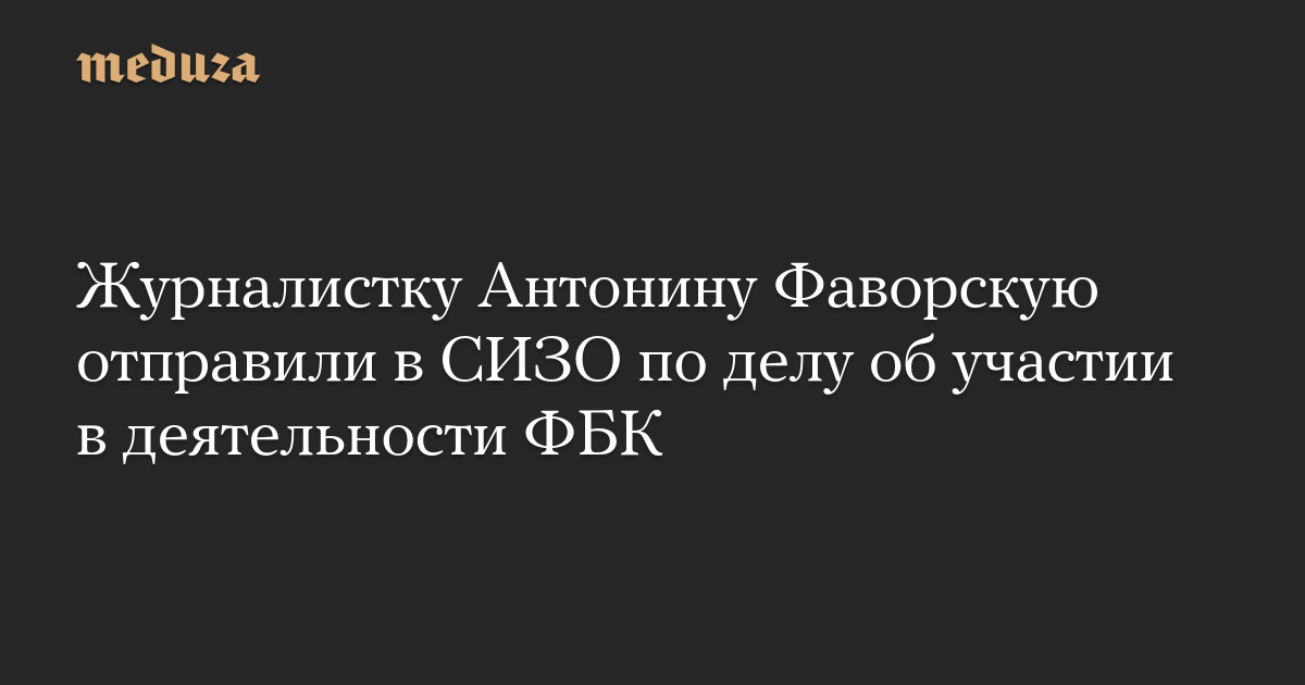 Журналистку Антонину Фаворскую отправили в СИЗО по делу об участии в деятельности ФБК