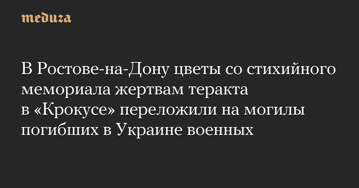 В Ростове-на-Дону цветы со стихийного мемориала жертвам теракта в «Крокусе» переложили на могилы погибших в Украине военных