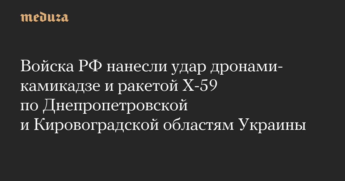 Войска РФ нанесли удар дронами-камикадзе и ракетой Х-59 по Днепропетровской и Кировоградской областям Украины