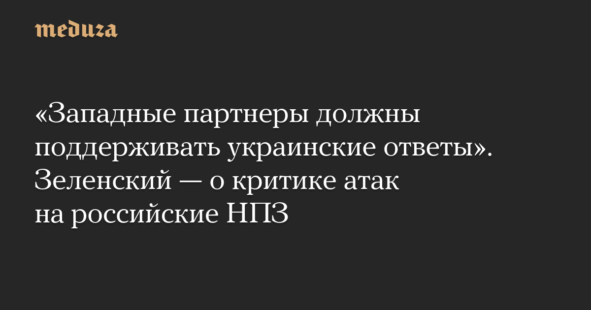 «Западные партнеры должны поддерживать украинские ответы». Зеленский — о критике атак на российские НПЗ
