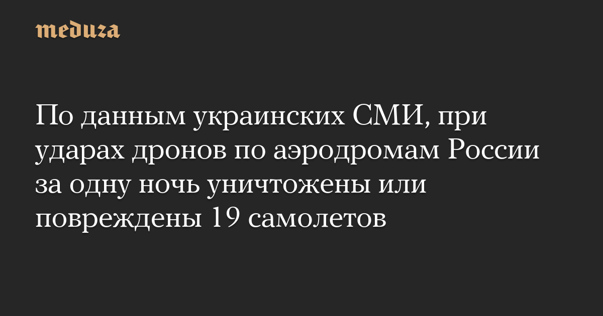 По данным украинских СМИ, при ударах дронов по аэродромам России за одну ночь уничтожены или повреждены 19 самолетов