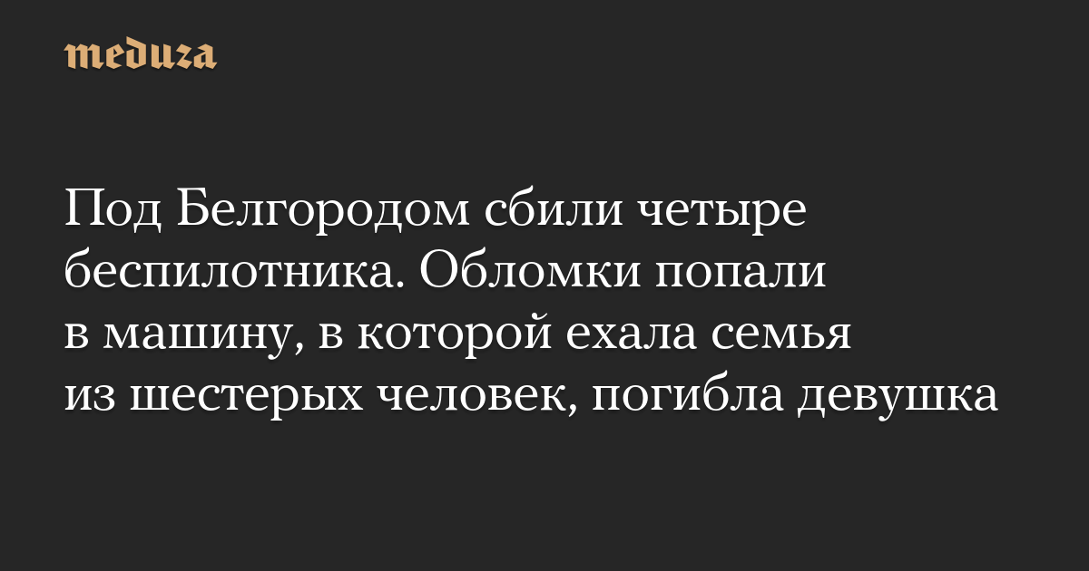 Под Белгородом сбили четыре беспилотника. Обломки попали в машину, в которой ехала семья из шестерых человек, погибла девушка