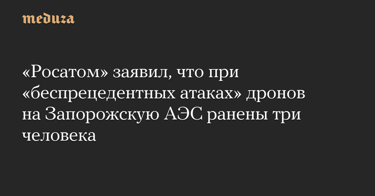 Запорожская АЭС подверглась «беспрецедентной серии атак дронов», ранены трое сотрудников, сообщили в «Росатоме». В госкорпорации утверждают, что создана прямая угроза безопасности станции.
