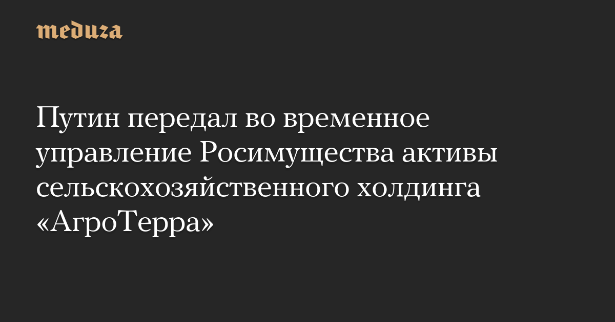 Путин передал во временное управление Росимущества активы сельскохозяйственного холдинга «АгроТерра»