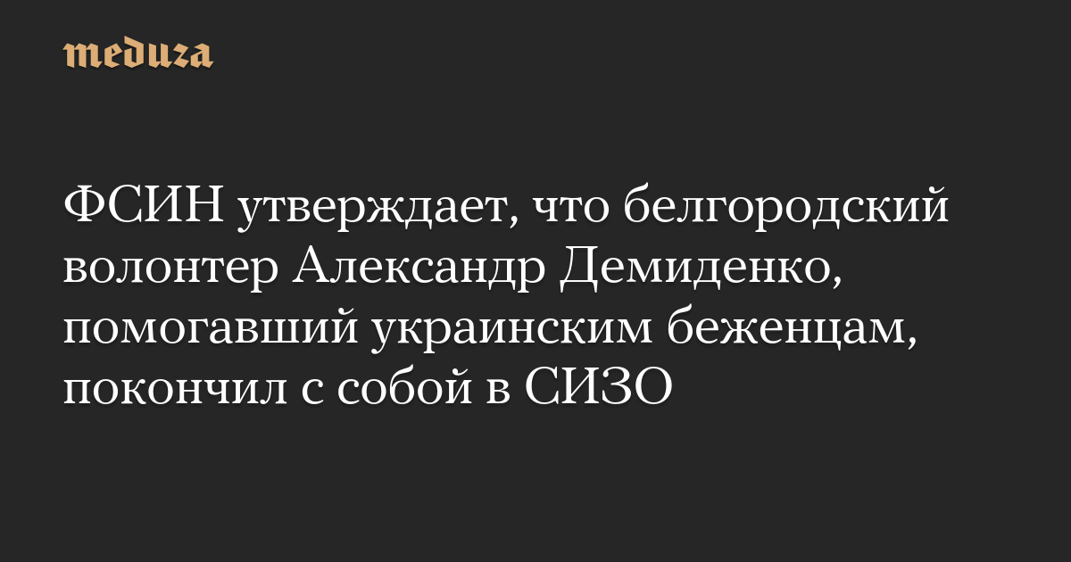 ФСИН утверждает, что белгородский волонтер Александр Демиденко, помогавший украинским беженцам, покончил с собой в СИЗО