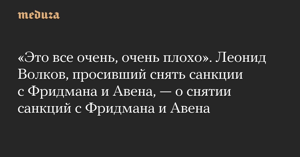 «Это все очень, очень плохо». Леонид Волков, просивший снять санкции с Фридмана и Авена, — о снятии санкций с Фридмана и Авена