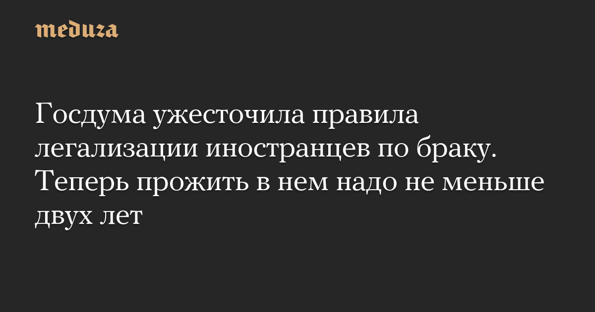 Госдума ужесточила правила легализации иностранцев по браку. Теперь прожить в нем надо не меньше двух лет