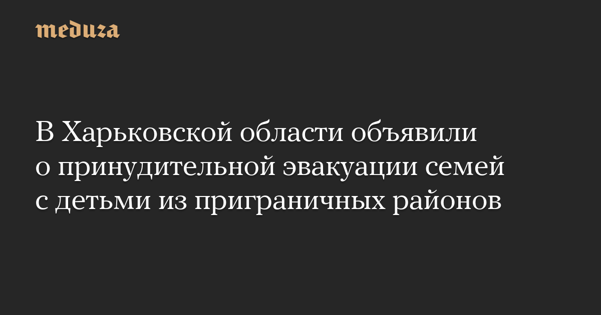 Совет обороны Харьковской области принял решение о принудительной эвакуации семей с детьми из 47 «прифронтовых населенных пунктов», сообщил глава областной военной администрации Олег Синегубов.