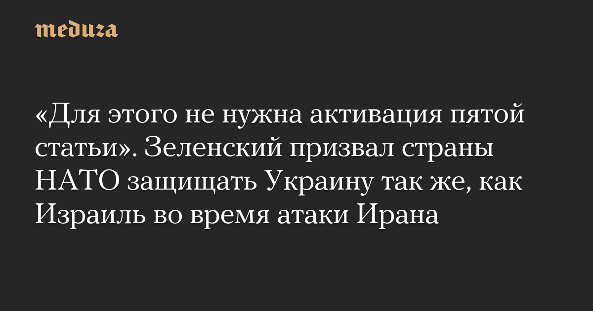 «Защитив Израиль, свободный мир продемонстрировал, что именно такое единение не только возможно, но и на 100% эффективнее. Решительные действия союзников не допустили успеха террора и потери инфраструктуры и заставили агрессора остыть. То же возможно и в защите от террора Украины, которая, как и Израиль, не является членом НАТО. И для этого не нужна активация пятой статьи, достаточно только политической воли», — сказал Зеленский.