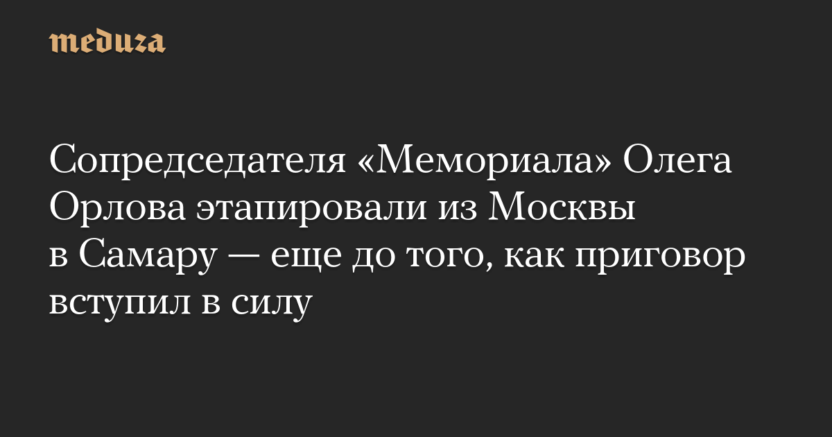 Сопредседателя «Мемориала» Олега Орлова этапировали из Москвы в Самару — еще до того, как приговор вступил в силу