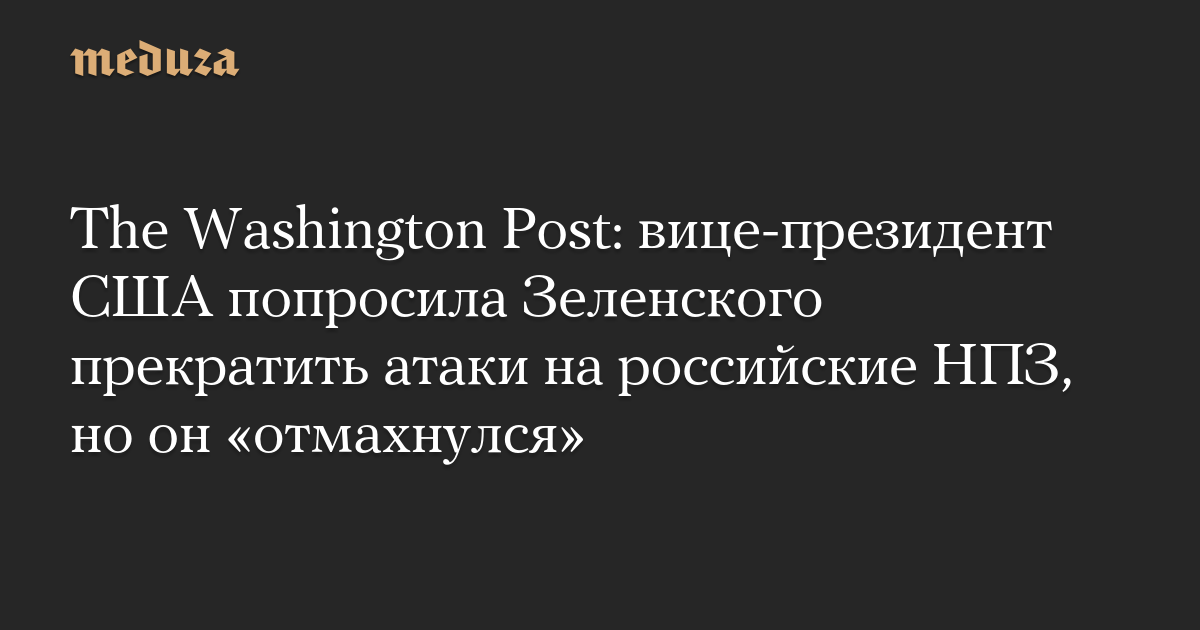 The Washington Post: вице-президент США попросила Зеленского прекратить атаки на российские НПЗ, но он «отмахнулся»
